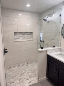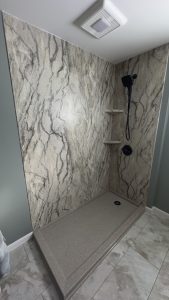 • Custom Tile Work: Choose materials like porcelain, ceramic, or natural stone to create a stunning shower interior.